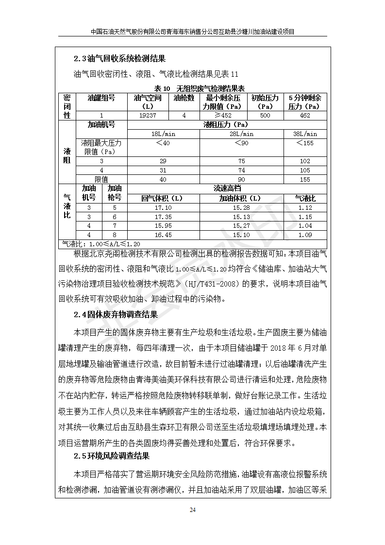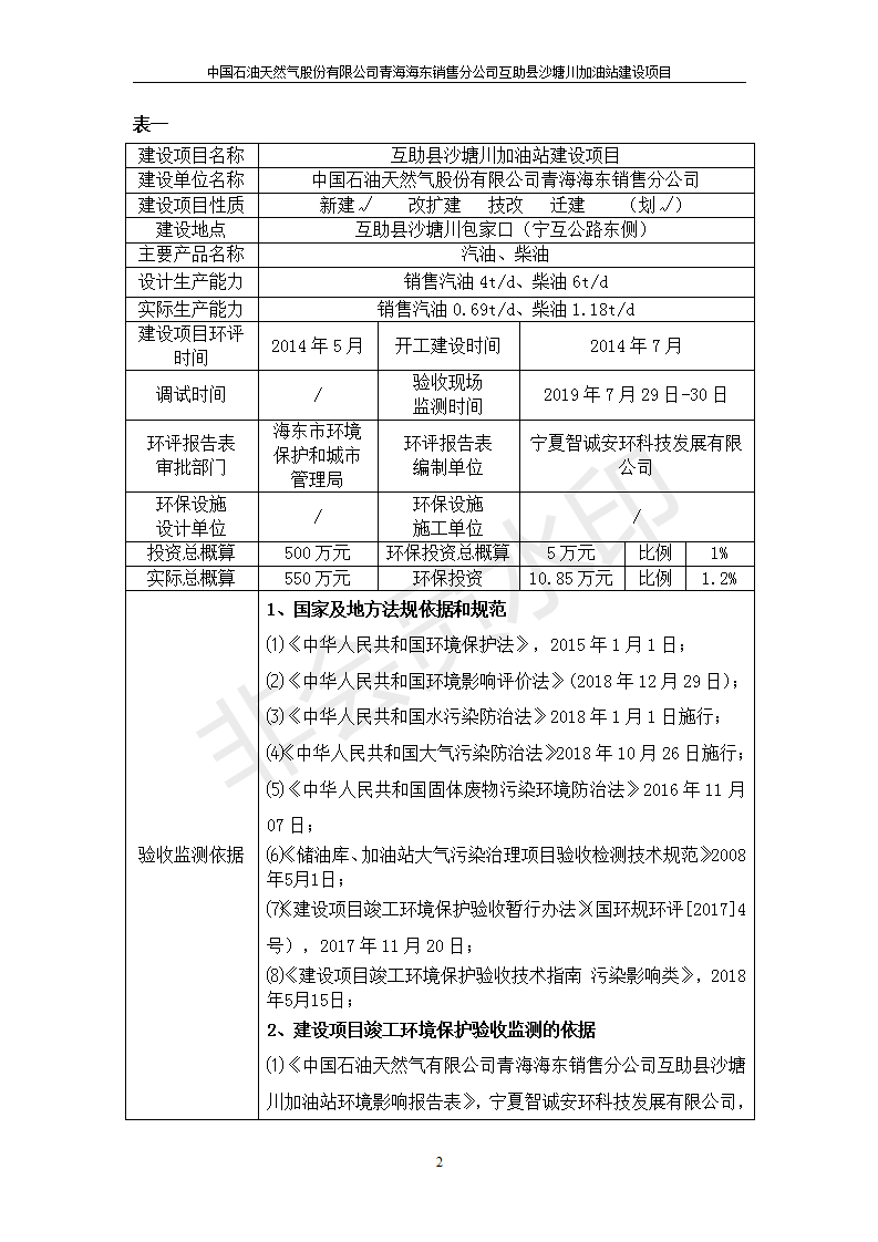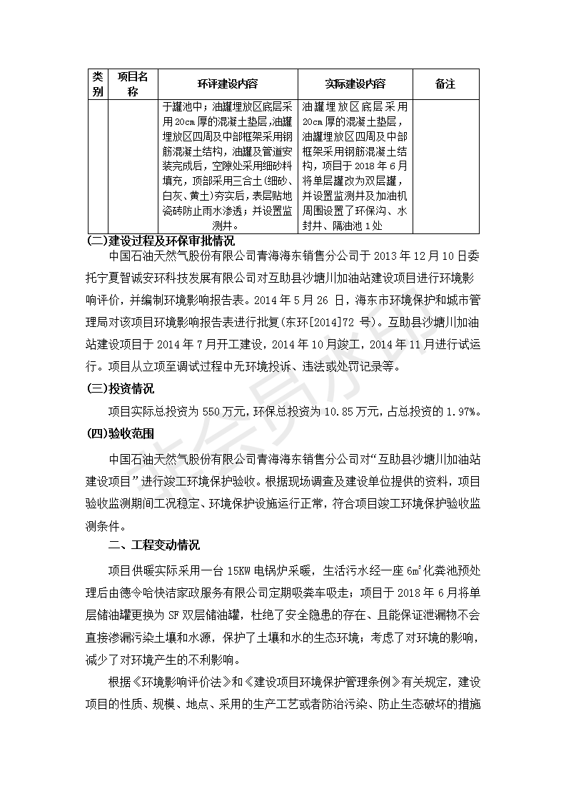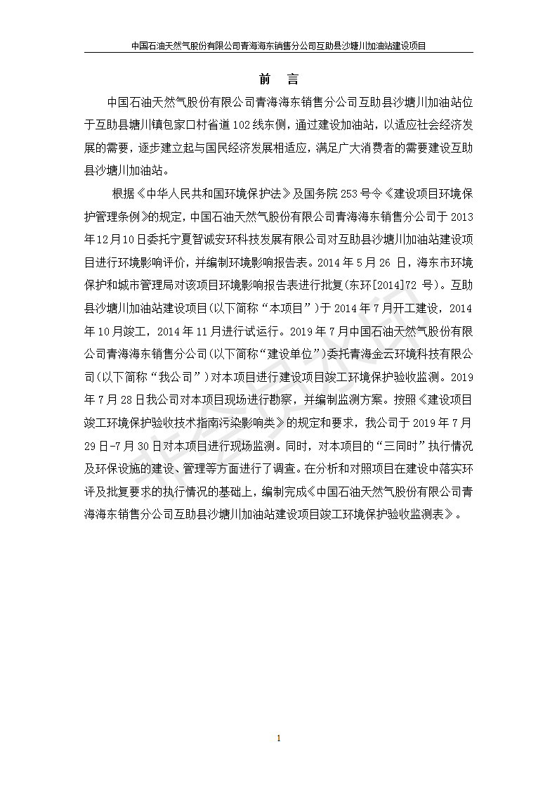 互助縣沙塘川加油站建設項目竣工環(huán)境保護驗收監(jiān)測報告表發(fā)布日期:(2019-9-27) 點擊次數(shù):2078 |