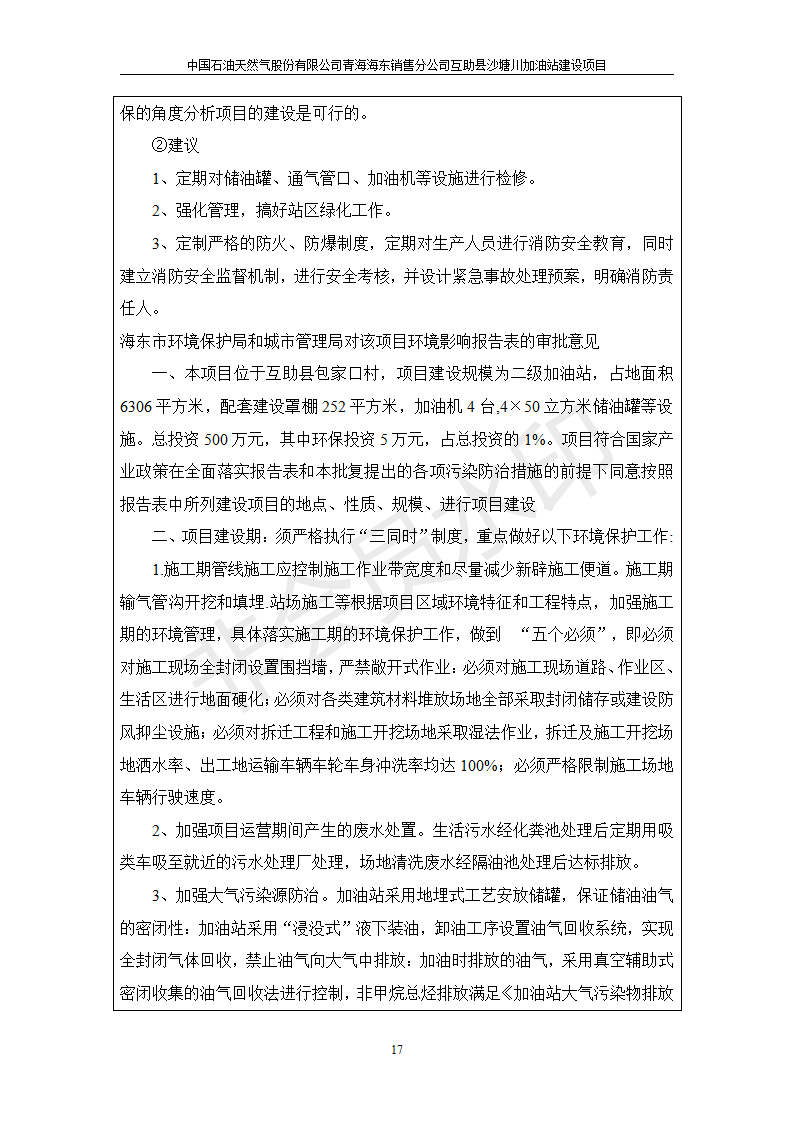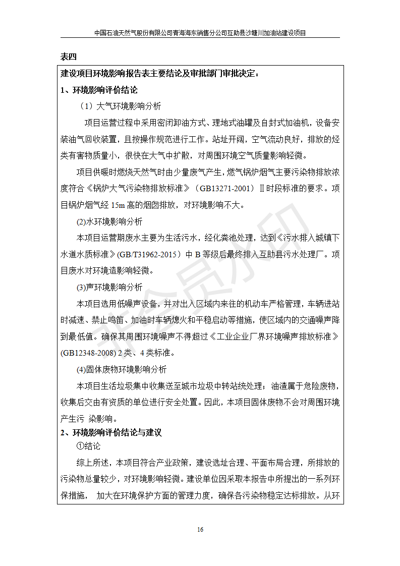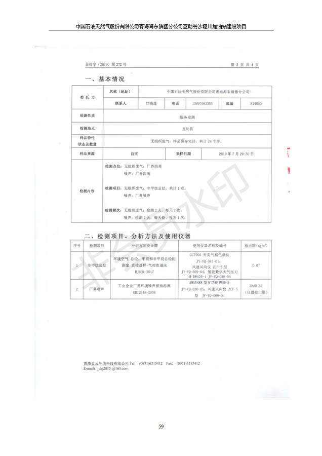 | 上一篇:互助縣東環(huán)路加油站改建項目竣工環(huán)境保護驗收監(jiān)測報告表公示 | 下一篇:食品生產(chǎn)加工配送服務體系建設項目 竣工環(huán)境保護驗收監(jiān)測報告表公示 |