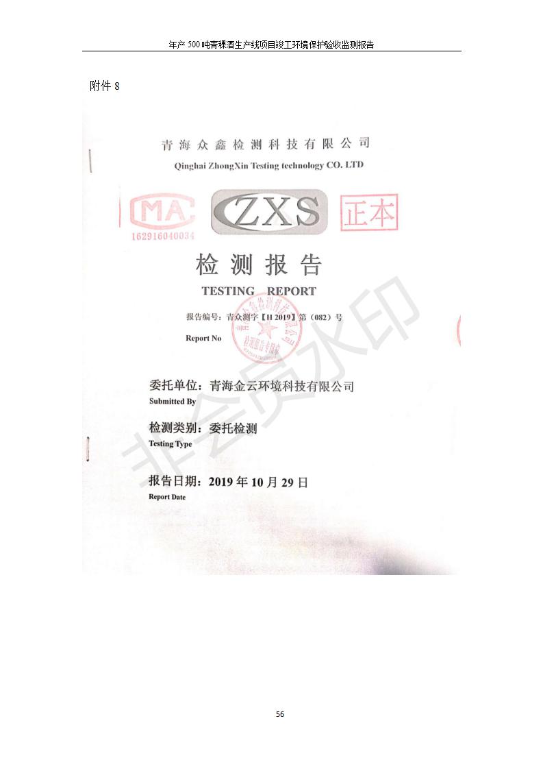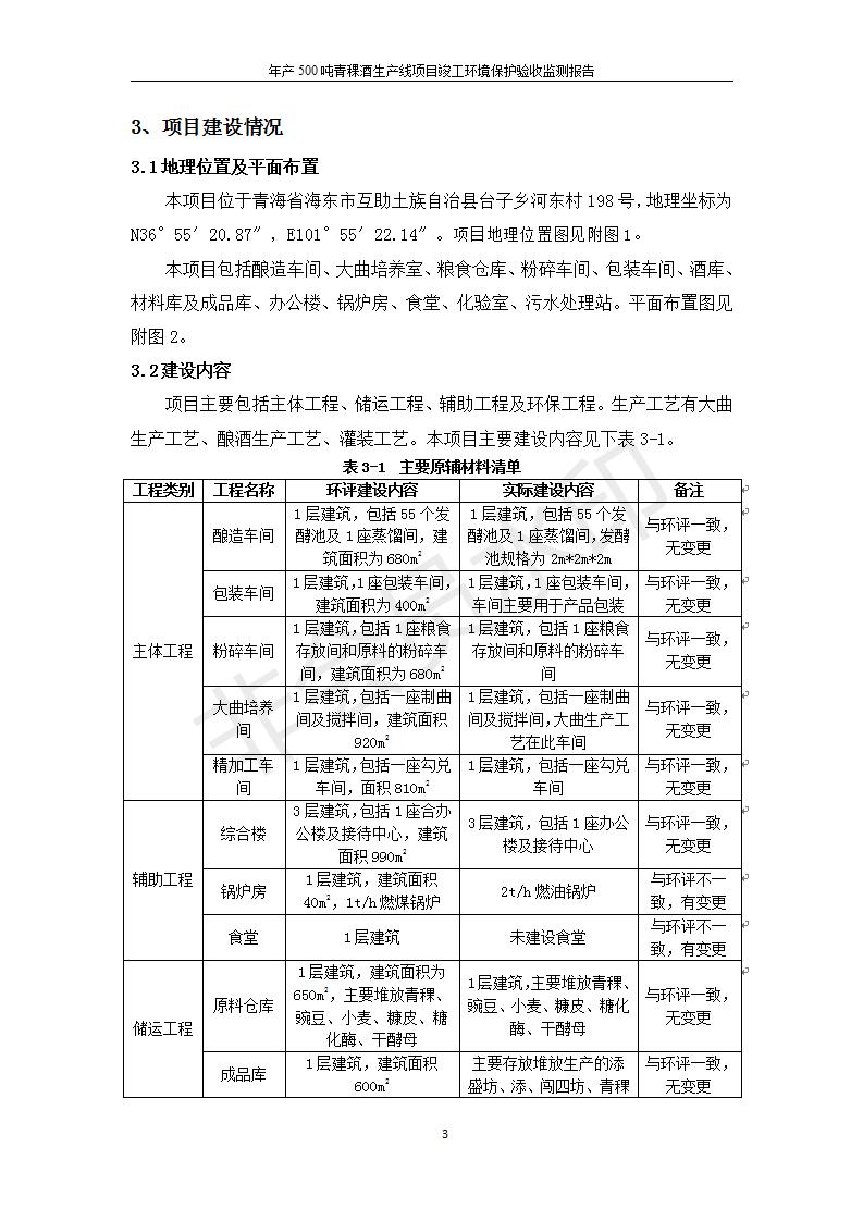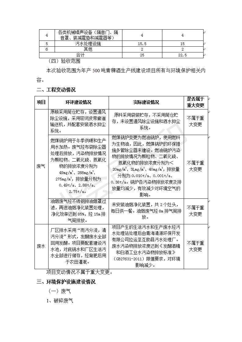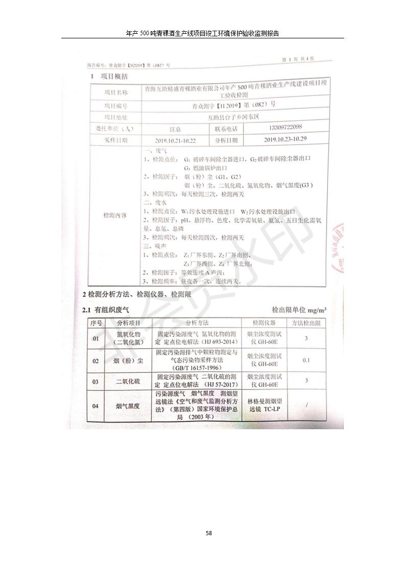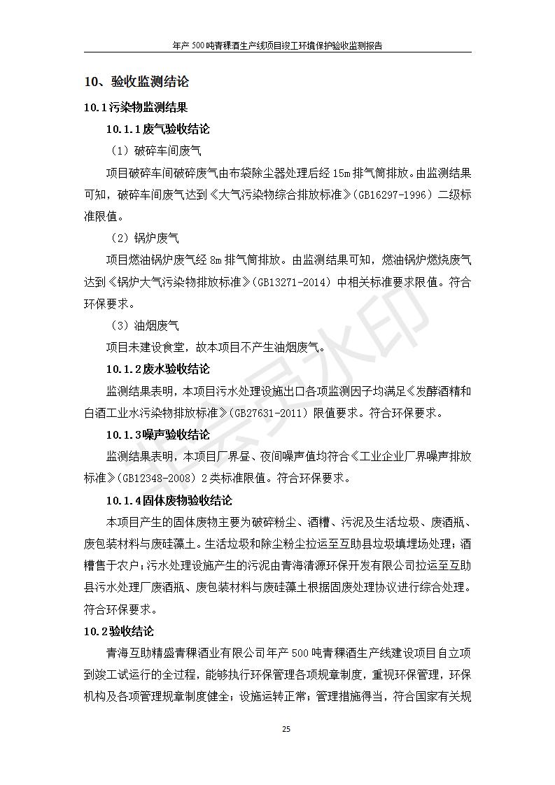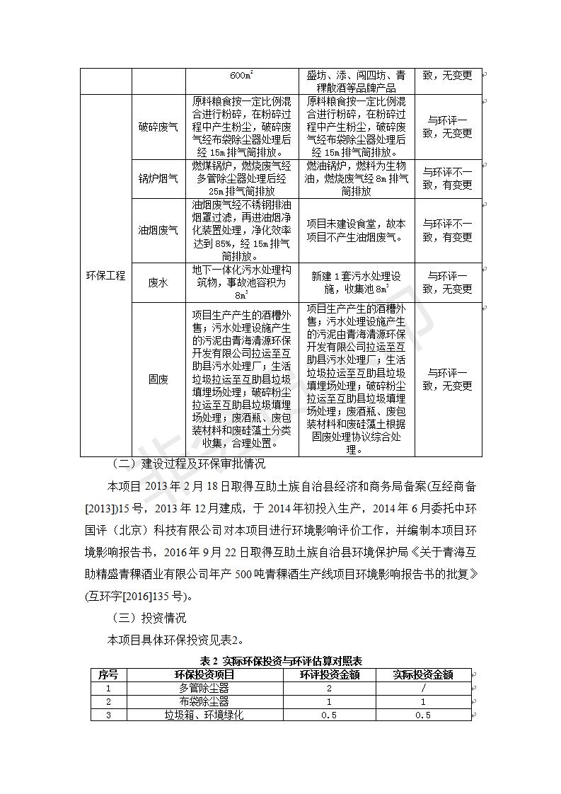 根據(jù)中華人民共和國國務(wù)院令第682號《國務(wù)院關(guān)于修改〈建設(shè)項目環(huán)境保護管理條例〉的決定》和《建設(shè)項目竣工環(huán)境保護驗收暫行辦法》(國務(wù)院令682號),綜合檢測實驗室建設(shè)項目(包括竣工環(huán)境保護驗收監(jiān)測報告表和驗收意見)公示如下。 一、項目名稱:青海互助精盛青稞酒業(yè)有限公司年產(chǎn)500噸青稞酒業(yè)生產(chǎn)線建設(shè)項目 二、地點:青海省海東市互助土族自治縣臺子鄉(xiāng)河?xùn)|村198號