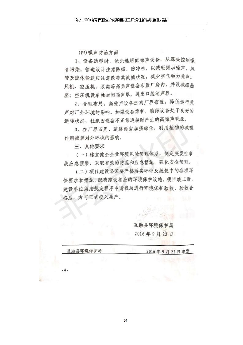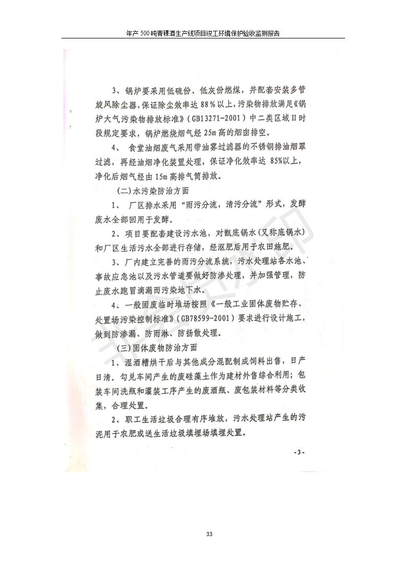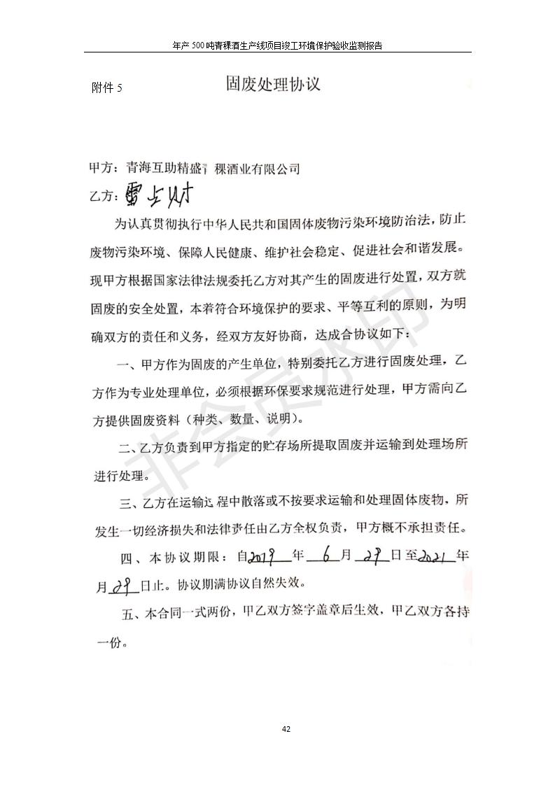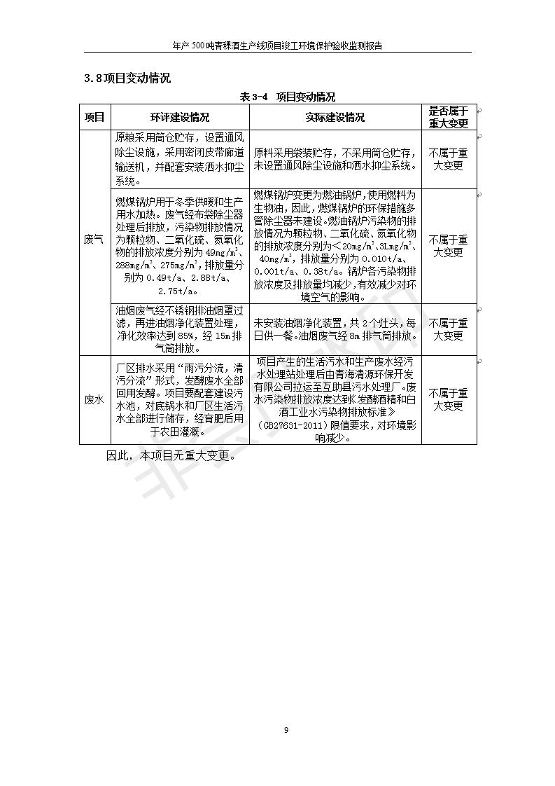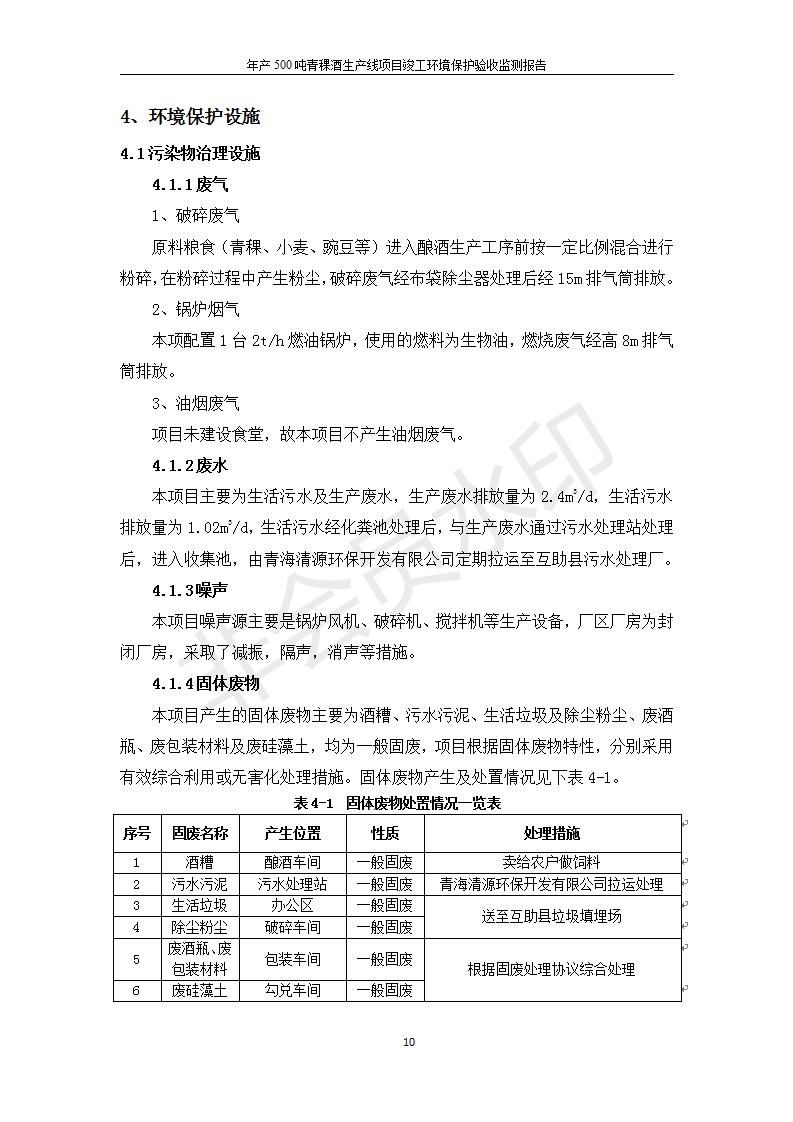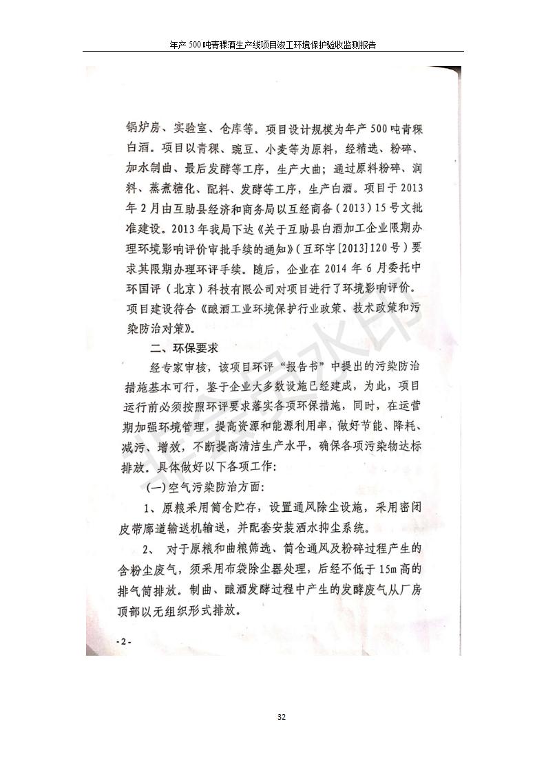 根據(jù)中華人民共和國國務(wù)院令第682號《國務(wù)院關(guān)于修改〈建設(shè)項目環(huán)境保護管理條例〉的決定》和《建設(shè)項目竣工環(huán)境保護驗收暫行辦法》(國務(wù)院令682號),綜合檢測實驗室建設(shè)項目(包括竣工環(huán)境保護驗收監(jiān)測報告表和驗收意見)公示如下。 一、項目名稱:青海互助精盛青稞酒業(yè)有限公司年產(chǎn)500噸青稞酒業(yè)生產(chǎn)線建設(shè)項目 二、地點:青海省海東市互助土族自治縣臺子鄉(xiāng)河?xùn)|村198號