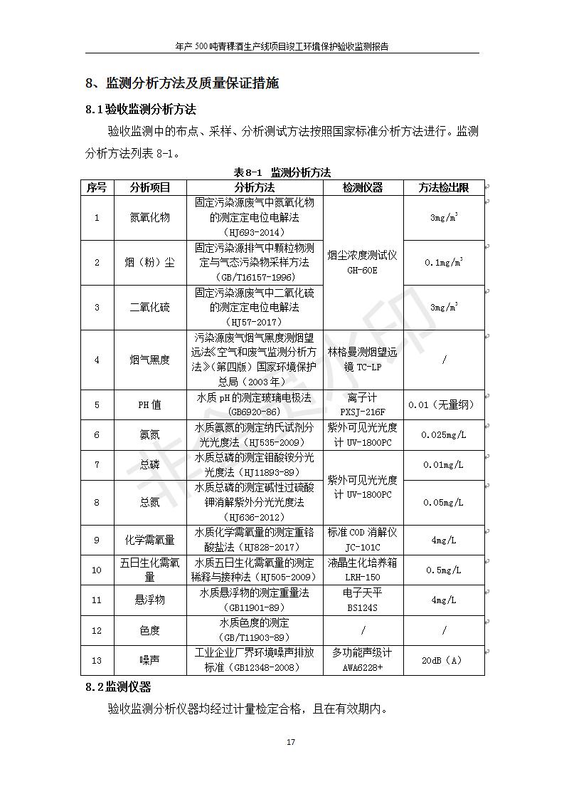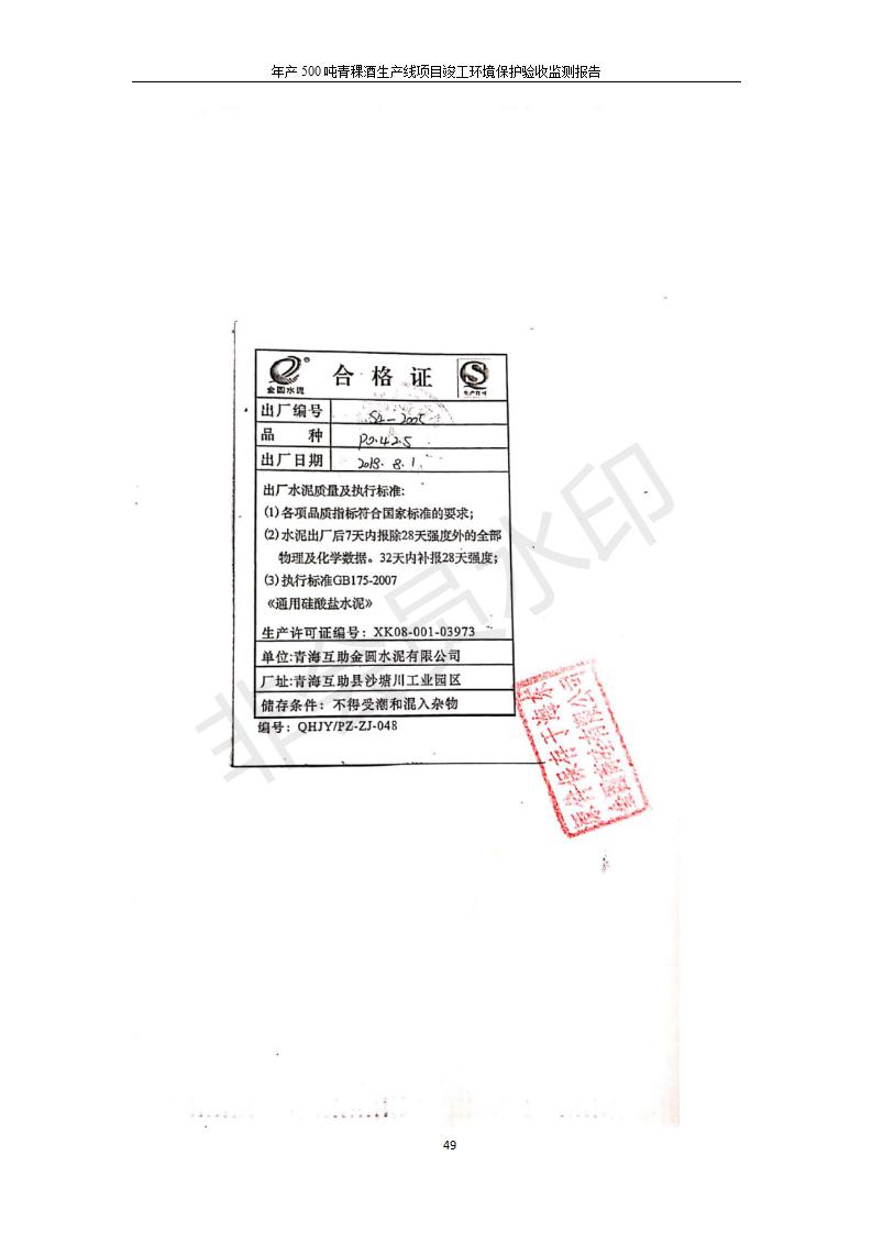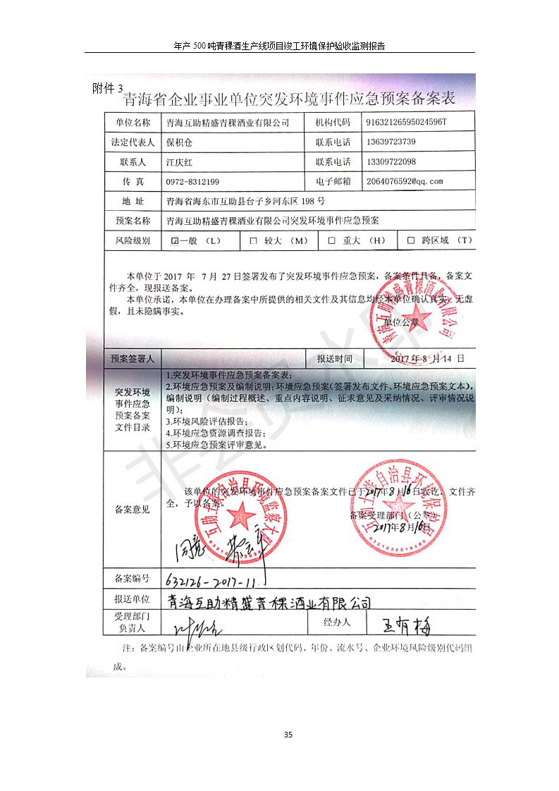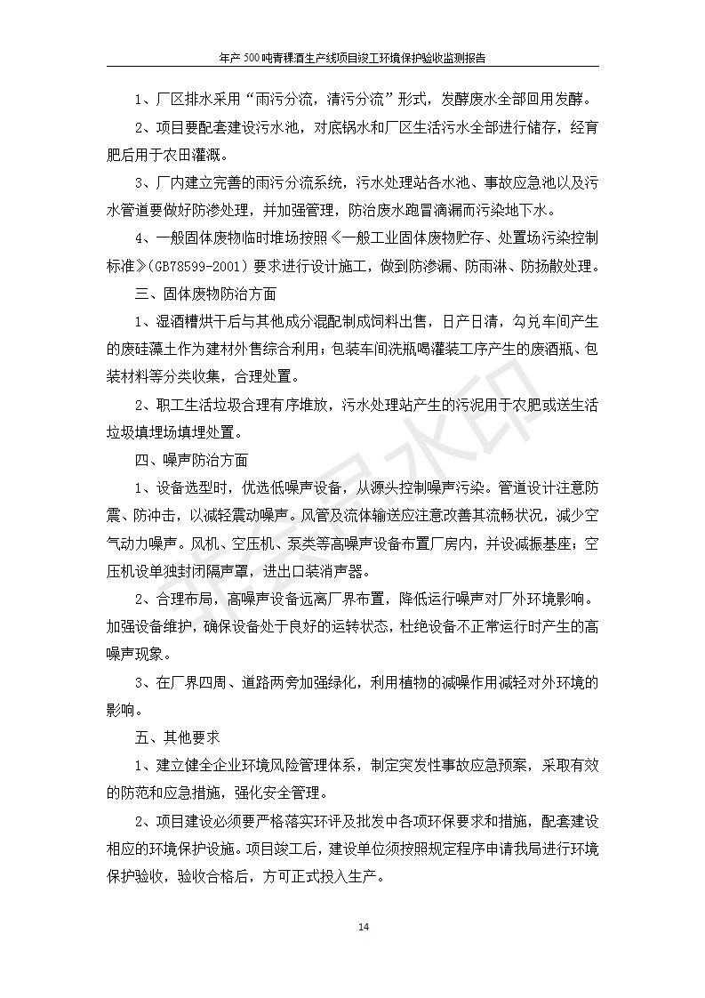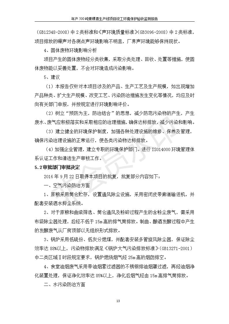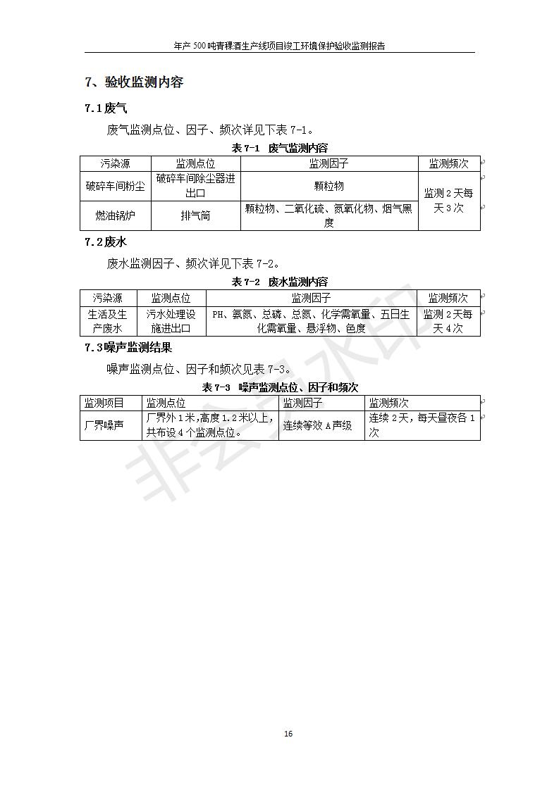 根據(jù)中華人民共和國國務(wù)院令第682號《國務(wù)院關(guān)于修改〈建設(shè)項目環(huán)境保護管理條例〉的決定》和《建設(shè)項目竣工環(huán)境保護驗收暫行辦法》(國務(wù)院令682號),綜合檢測實驗室建設(shè)項目(包括竣工環(huán)境保護驗收監(jiān)測報告表和驗收意見)公示如下。 一、項目名稱:青海互助精盛青稞酒業(yè)有限公司年產(chǎn)500噸青稞酒業(yè)生產(chǎn)線建設(shè)項目 二、地點:青海省海東市互助土族自治縣臺子鄉(xiāng)河?xùn)|村198號